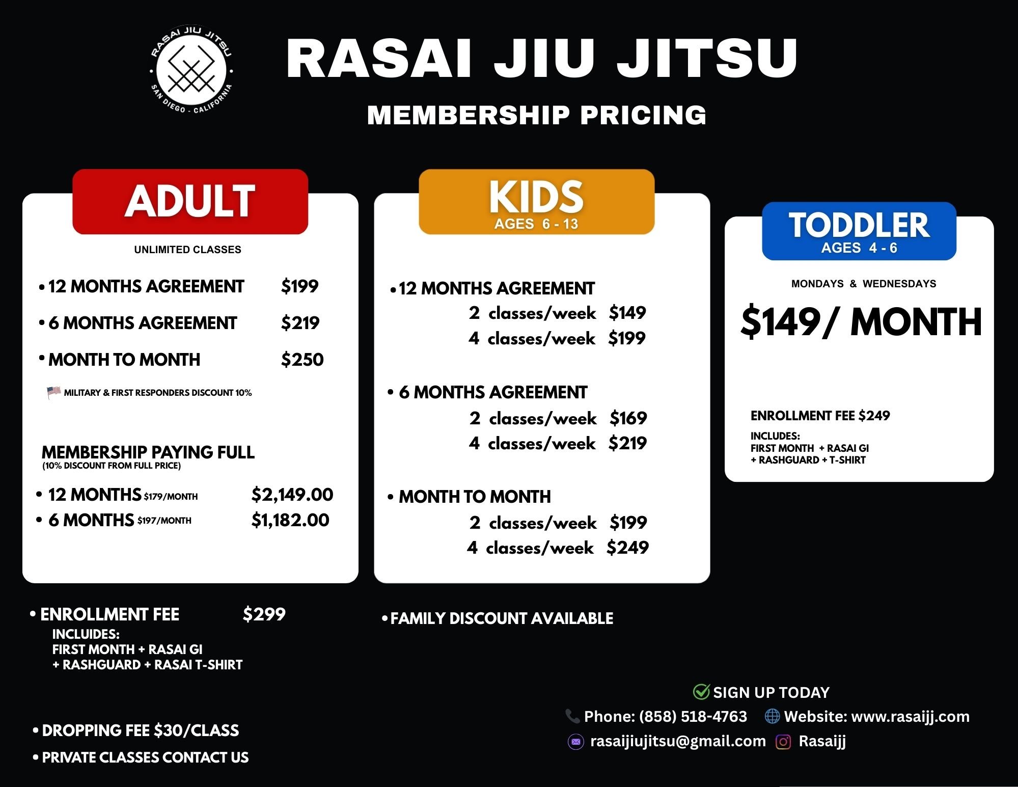 Don't miss out on this incredible opportunity to unleash your potential and embrace the art of Brazilian Jiu-Jitsu. Join us at Rasai Jiu-Jitsu and embark on a journey of self-discovery, empowerment, and achievement.